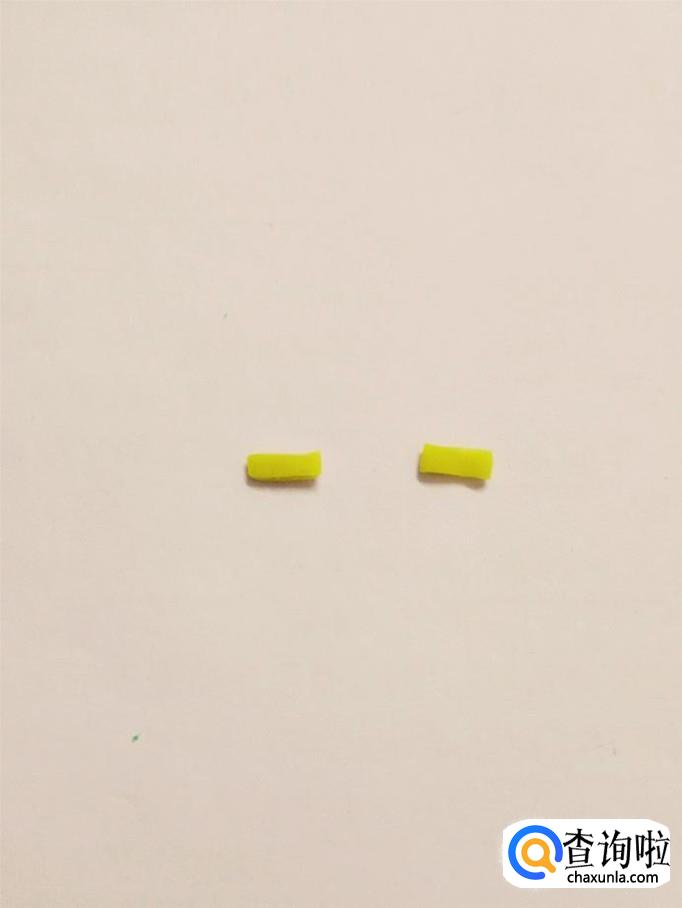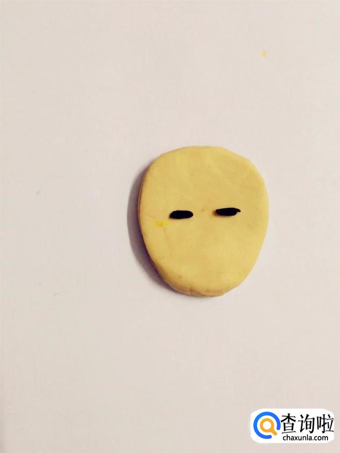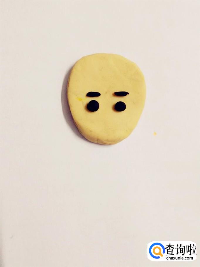 用两小块黑色搓成两个小细条,粘在脸上,当作眉毛。