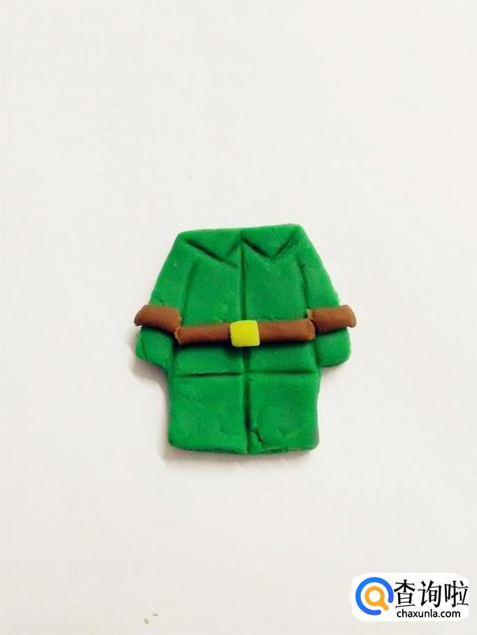 用一小块黄色捏成正方形,粘在腰带中间,当作腰带上的金属扣。