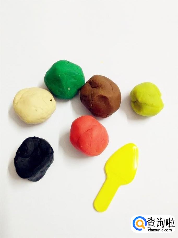 准备六种颜色的彩泥和一把塑料小刀。