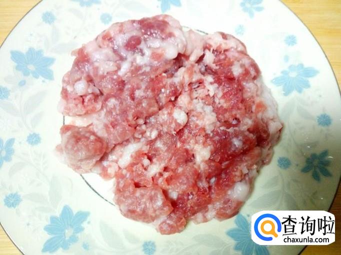 肉切成末,或者购买现成的肉馅,我用的是购买现成的肉馅。