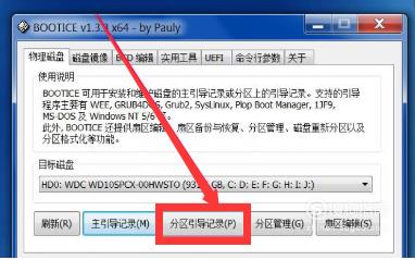 根据情况选择好硬盘后,在该页面点击【主引导记录】。