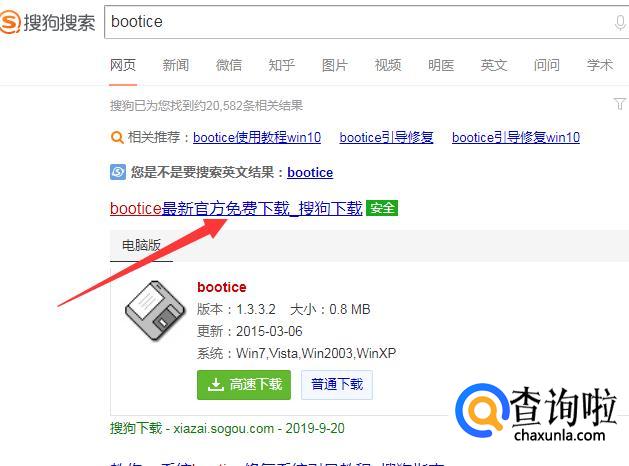 启动盘制作完成后,下载名叫【bootice】软件,这是一个主引导记录修复工具,下载并安装完成。