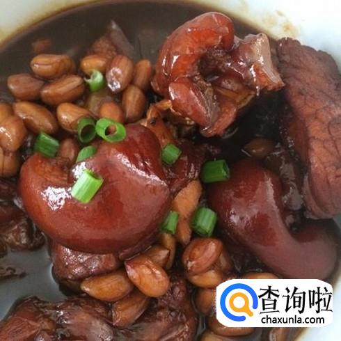 猪脚 花生 冰糖 老抽 生抽 香叶 桂皮 八角 山奈 盐 味精 生姜 大葱