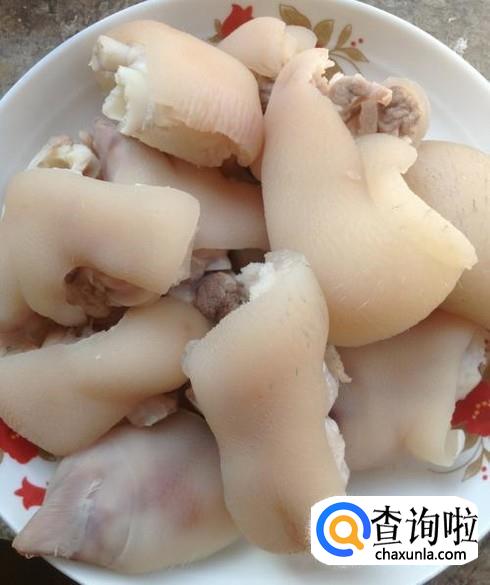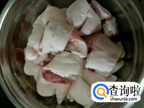 猪脚洗净,剁成小块小块的,可以在菜市场买的时候就叫他给你剁好。