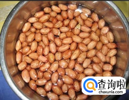 花生最好提前两小时,就把它放在盆里泡好