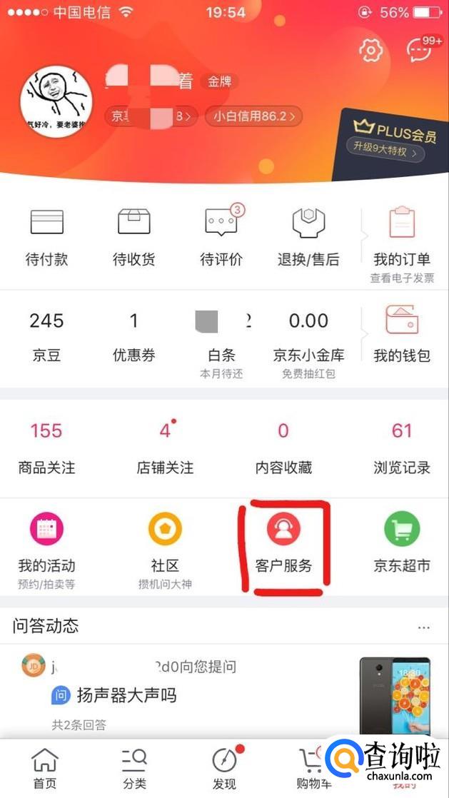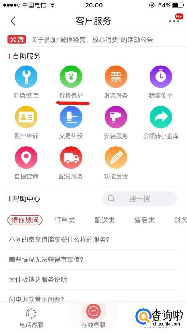 方法一:申请价格保护。首先打开手机京东,在我的一栏中点击客户服务,如图