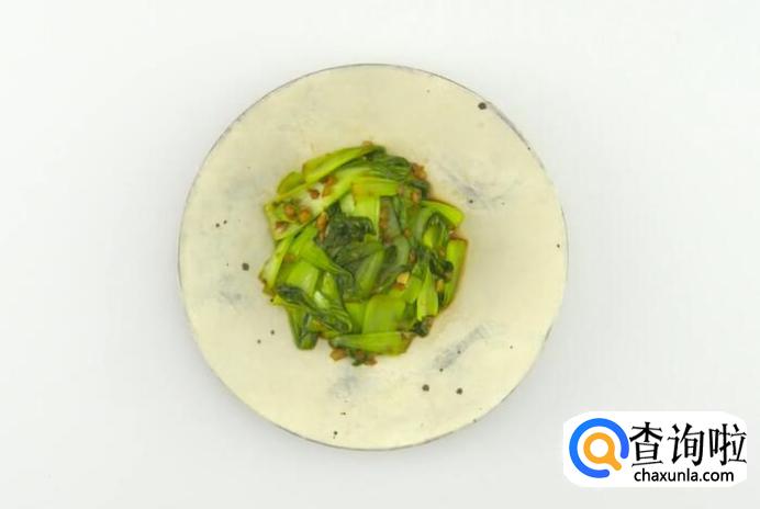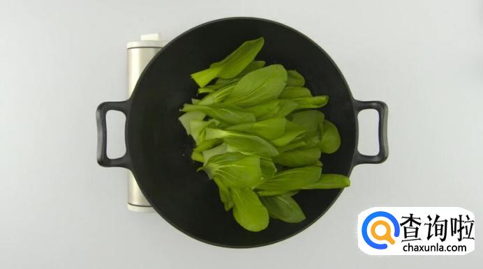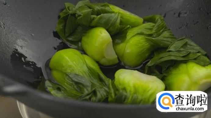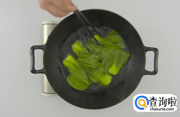 青菜放入锅中汆烫一分钟,捞出沥干。