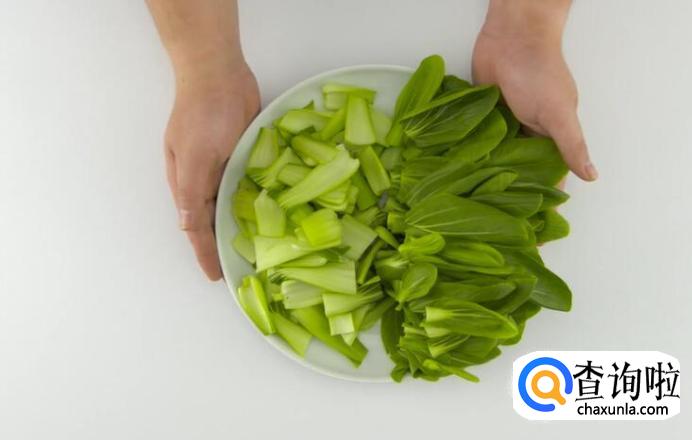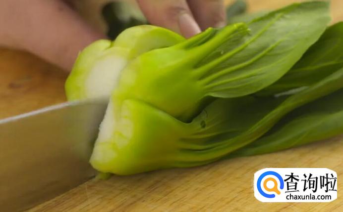 青菜去根,对半剖开。