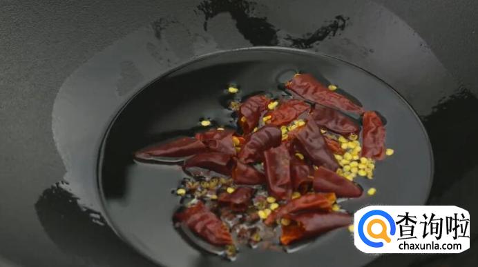 油微热时,放花椒和辣椒爆香。
