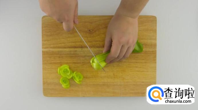 切去青菜根部。