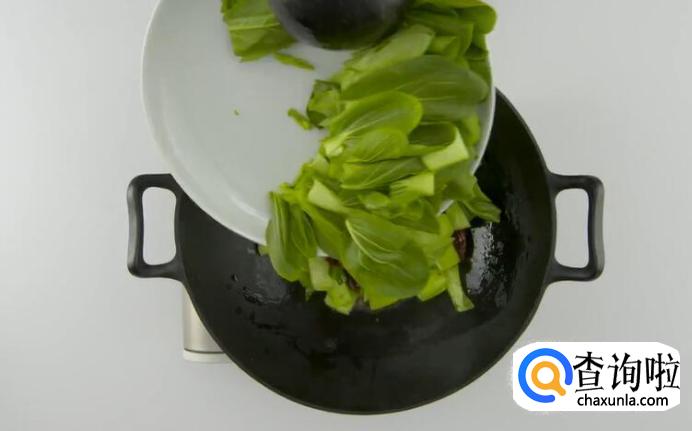 放入青菜翻炒。