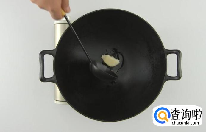 中小火热锅,放猪油化开。
