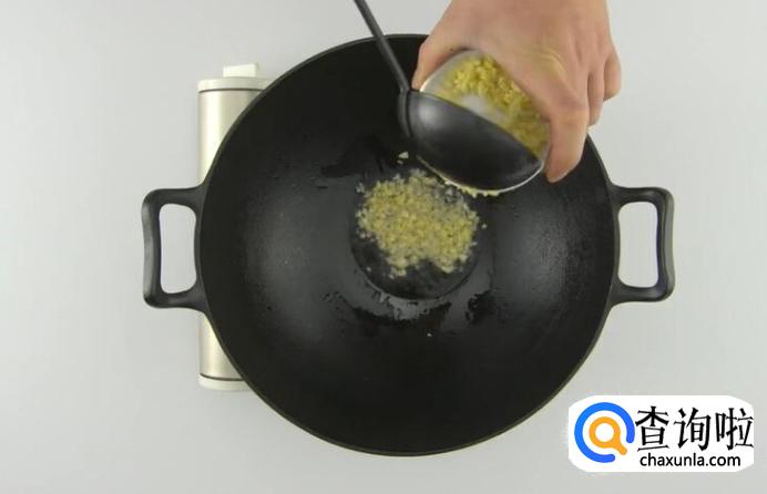 放入蒜蓉爆香。