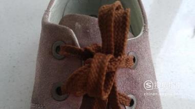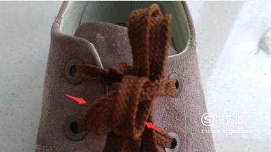 首先,我们将鞋带按照平时系的方式交叉打结。