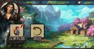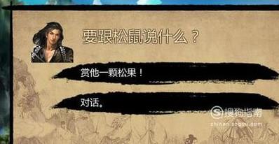 走出密林后你会发现一只松鼠,点击松鼠跟它对话,选择“赏它一颗松果”。之后对话框弹出“选择挑战哪一个”,下面是四本武功秘籍。