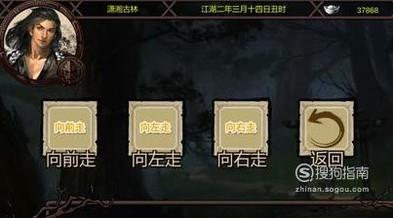 进入“潇湘古林”后系统提示你在“潇湘古林”的密林走,同时系统将出现“向前走”、“向左走”、“向右走”、“返回”等提示,依次选择右-前-左-前-左。