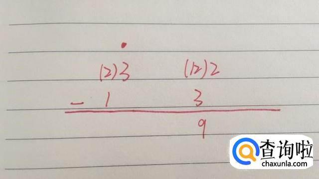 在减数32的“3”上点一个点,表明被借了1,这样2就变成了12,我们可以在2前面画个括号写上(12),可以让孩子比较直观看明白,然后让孩子自己算出12-9;
