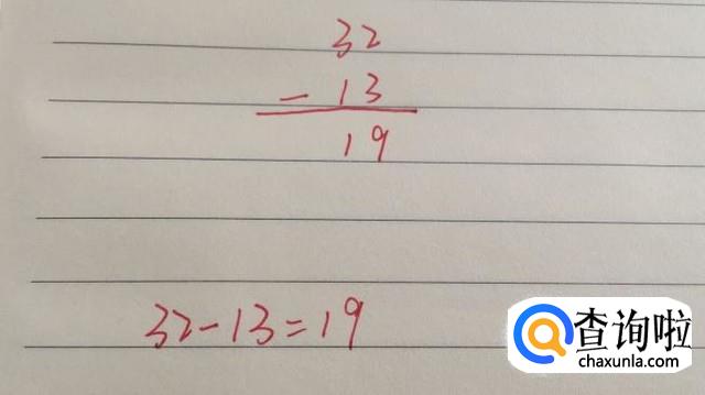 最后列个简单的竖式,孩子最开始可以麻烦点,到最后熟悉了就可以直接心算了,最后得到结论32-13=19。