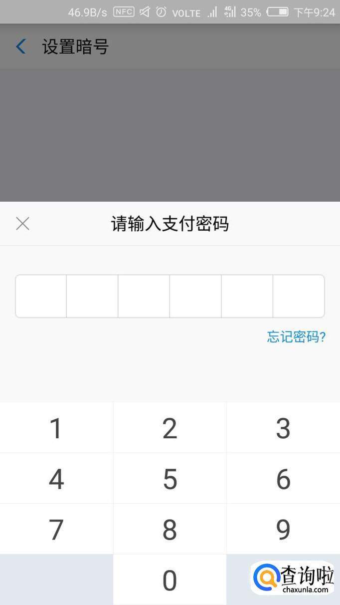 然后输入该支付宝的支付密码以验证你的身份,如图所示。