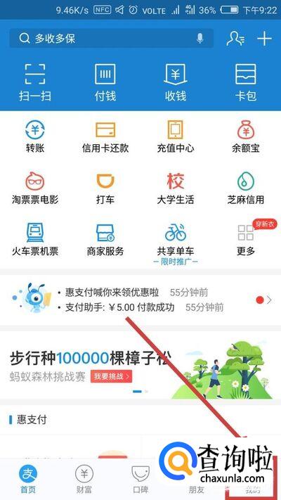 打开支付宝,在界面右下角找到“我的”,点击进入。