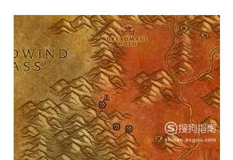 破坏上面所有标记点的石头以后,即可回去找【部落英雄的灵魂】完成此任务,NPC位置在悲伤沼泽到诅咒之地的门口,具体坐标见下图。