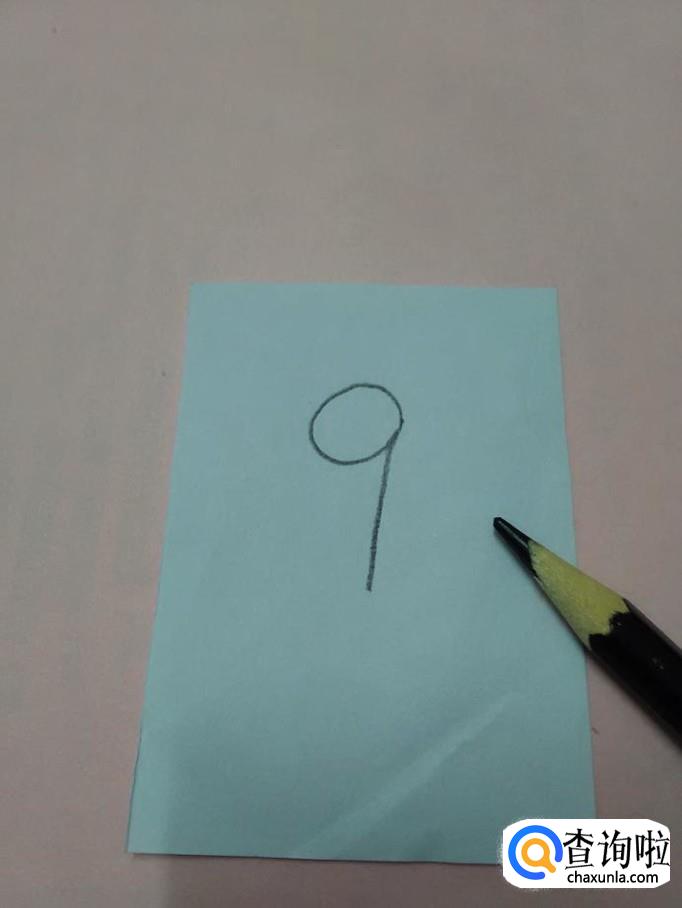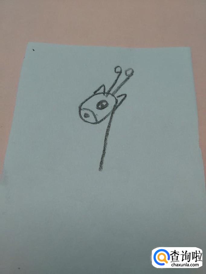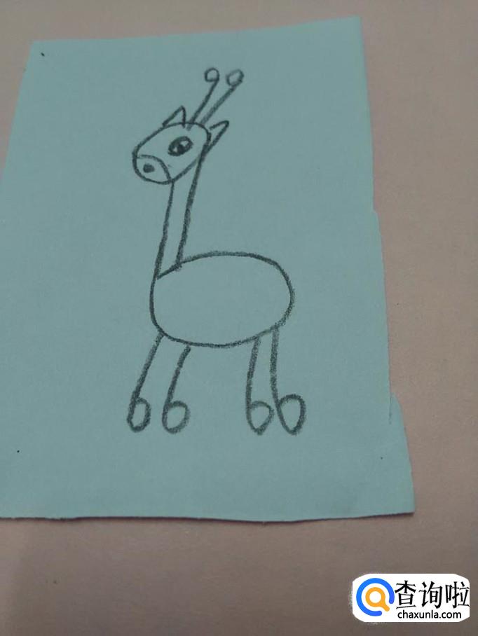 先用黑笔在纸上画一个9,表示长颈鹿的头和脖子。
