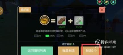 点击“编织筐”图纸,进入“编织筐”图纸页面,根据提示,去采集20个茅草和50个植物纤维,然后点击“制造一个”,这样编辑框就制作好了,制作好的编织筐自动保存到背包里。
