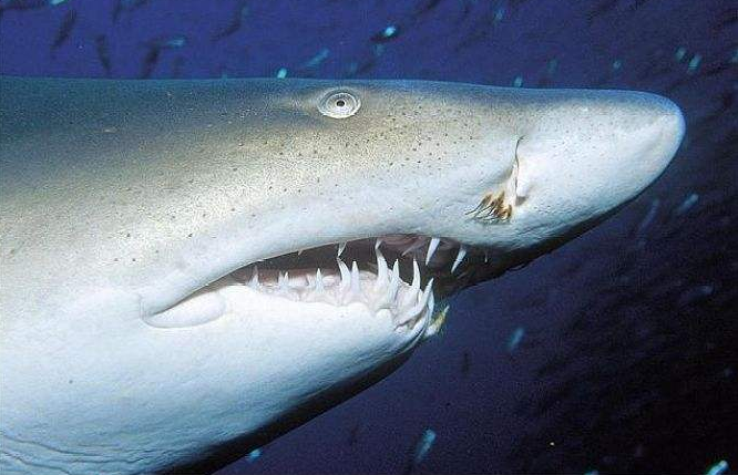 鲨鱼口中有成排的利齿,前排牙齿后面还有四五排备用牙齿,只要前排的牙齿掉落,后排的牙齿会马上向前移动,进入脱落的牙齿的牙床补上。鲨鱼一生需要更换成千上万颗牙齿。