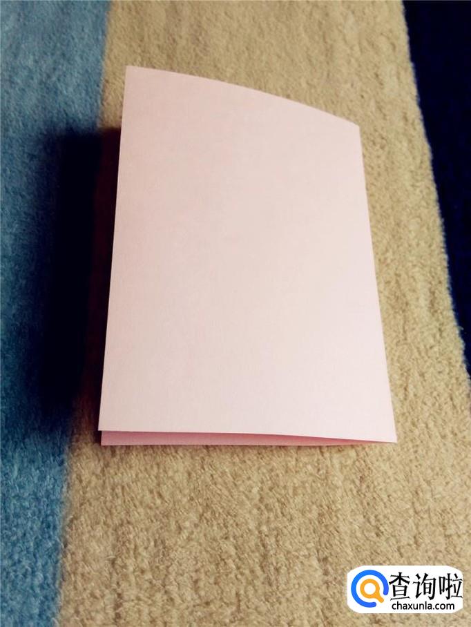 把彩色卡纸剪成自己需要的大小,然后横向对折一下。