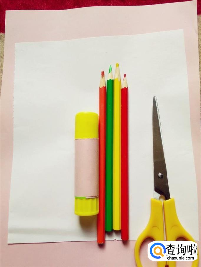 准备彩色卡纸、白纸、彩笔、剪刀、胶棒。