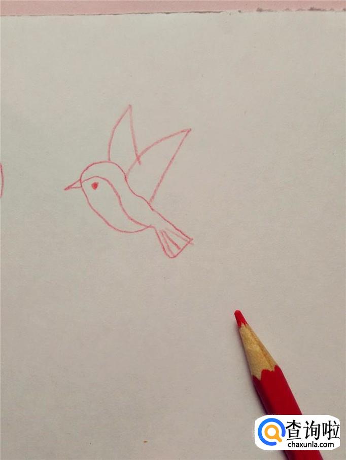 用桔红色彩笔在白纸上再画一只飞翔的小鸟。