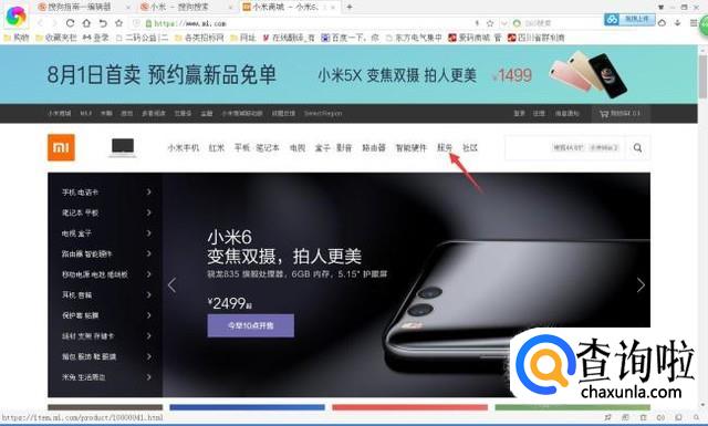 进入小米官网之后,在导航栏中点击“服务”字样,进入小米的服务类别