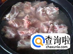 首先将排骨砍成小块,然后用温水洗净,洗净后放入锅中用大火炖。