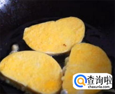 鸡蛋打进碗里,把馒头放进去两面沾上鸡蛋液。