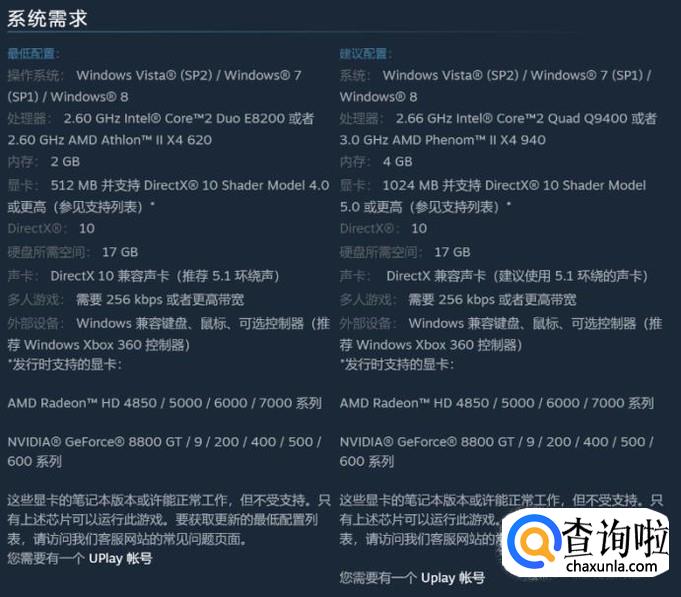 最后,可以看到刺客信条3需要的配置要求
