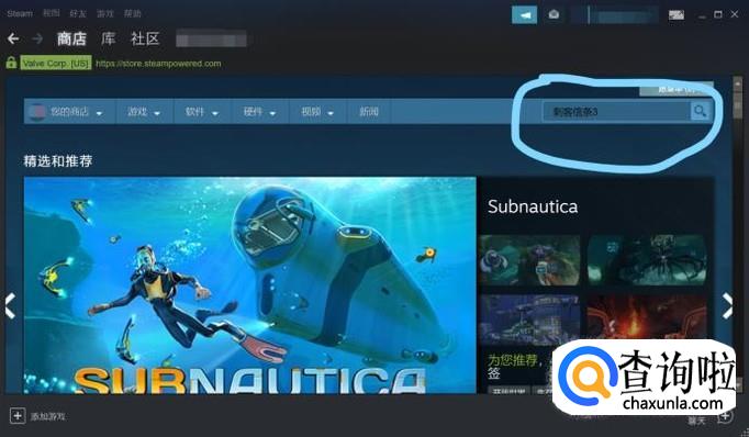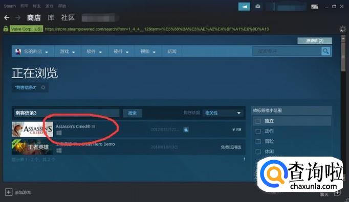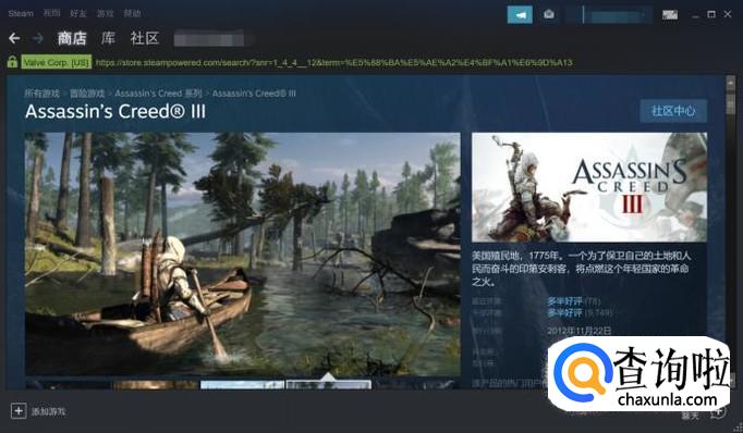 在steam右上角的搜索栏中输入“刺客信条3”,然后点击搜索