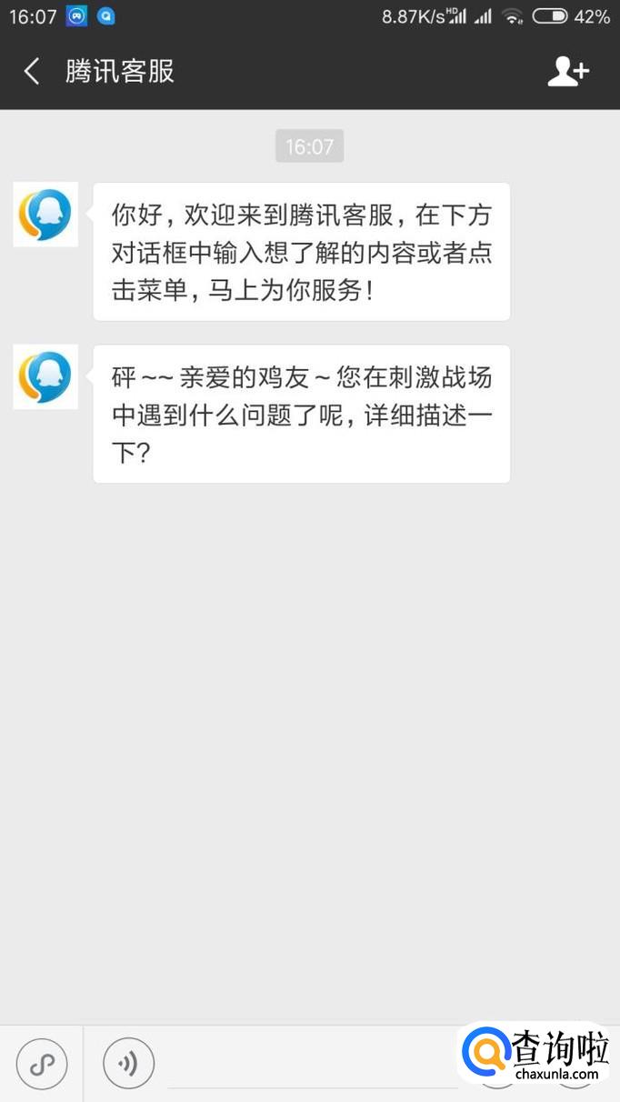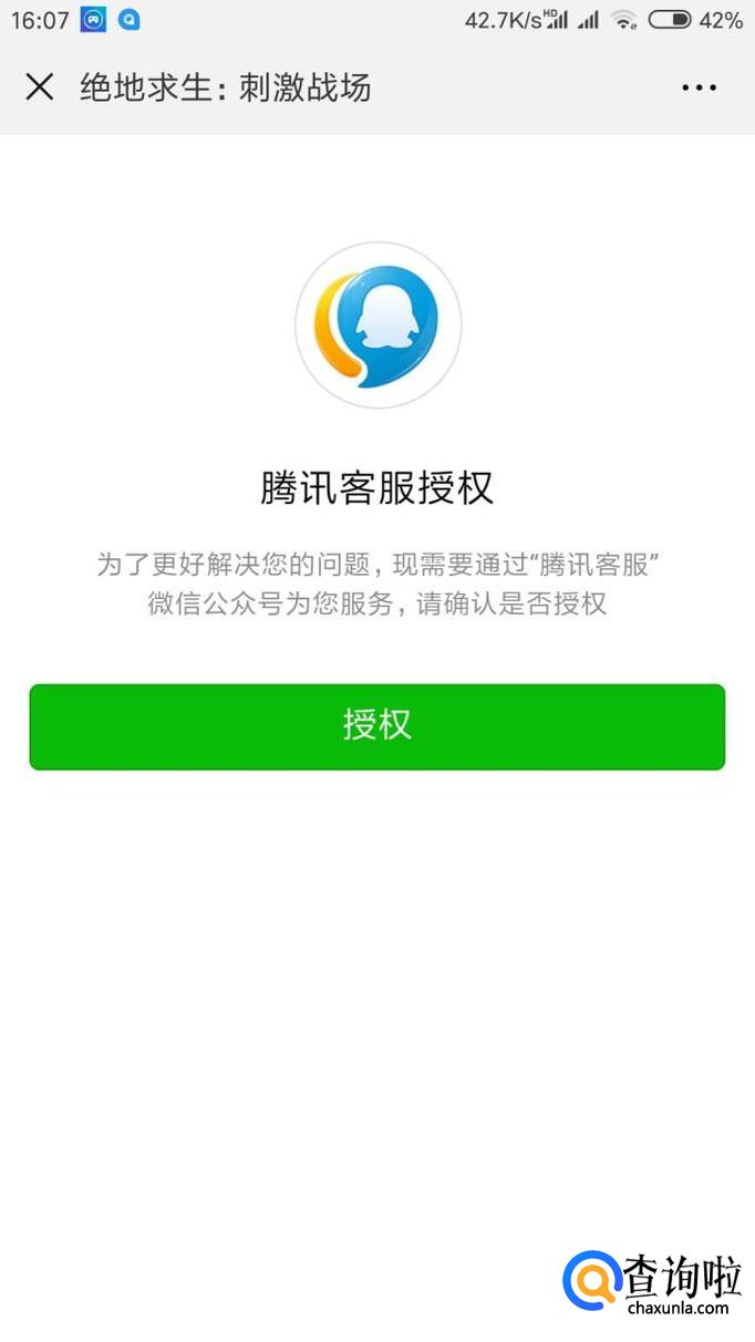 接下来会跳转到微信APP,授权关注公众号,就能连联系客服小姐姐了。注意这里的意见反馈是以之前刺激战场里面的名义反馈的。