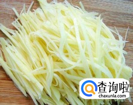 将土豆切成细细的丝,将葱切成末。