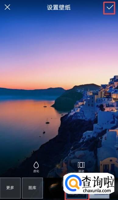 弹出的界面,我们选中一个壁纸,之后我们点击右上角的勾选;