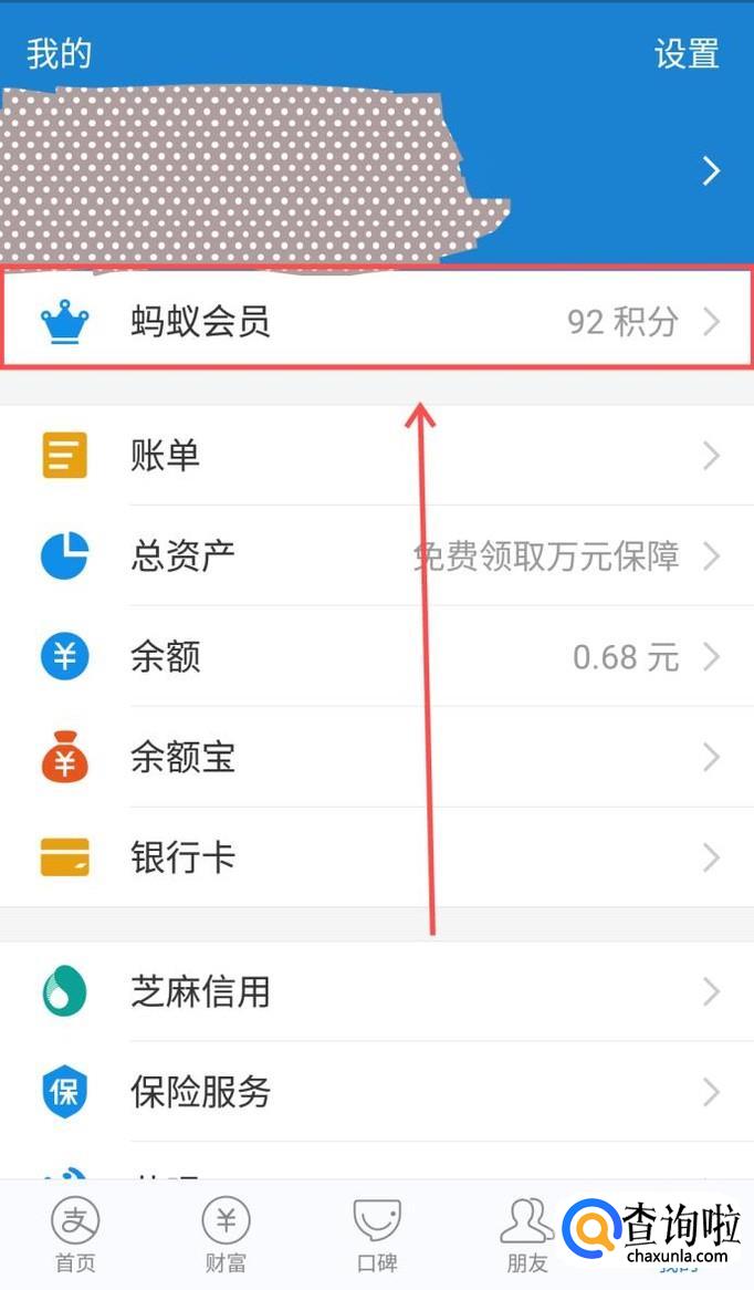 在页面上半部分可以找到“蚂蚁会员”,点击进入。