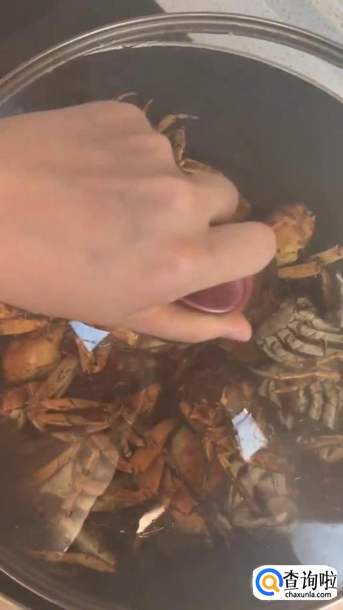 然后把螃蟹放到油锅中炸三分钟,如下图所示。