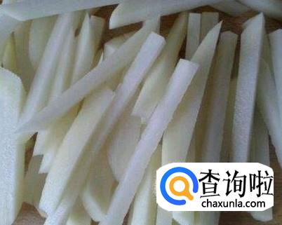 将土豆切成均匀的长条,每一根和筷子差不多粗。