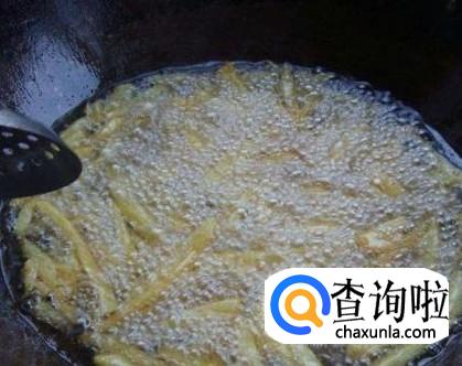 等土豆条晾凉后,放入烧热的油锅中,开中火,用铲子快速翻炒,这样可以使薯条的每一面均匀受热,等薯条各面呈金黄色时,就可以捞出来,蘸着番茄沙司吃了。