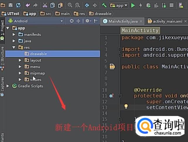 然后回到Android Studio界面,新建一个Android项目,如下图所示