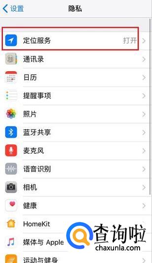 在隐私设置中,点击界面最上方的“定位服务”选项。