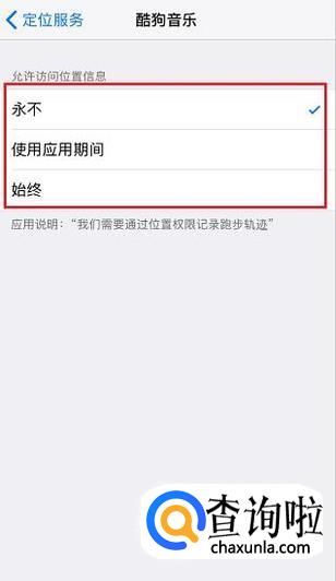 或者可以点击进入具体的应用设置界面,根据个人需求选择允许访问位置信息的类型,选择“永不”即可针对这一应用,关闭“定位服务”的功能。