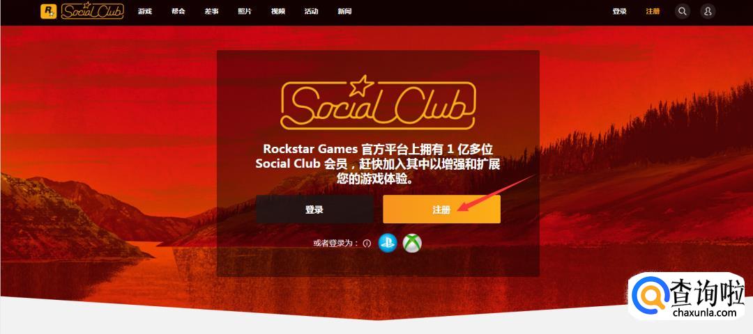 玩游戏之前你需要有自己的账号。在主界面找到“social club”,点击进入他们的club页面。右边的“加入位置”也可以点击进入到他们的CLUB页面进行账号注册。
