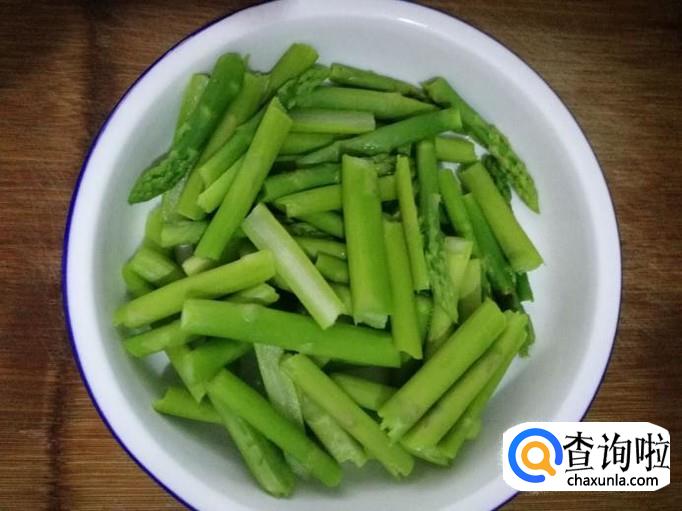 将芦笋折成小段,清水洗净。老的丢掉不要。