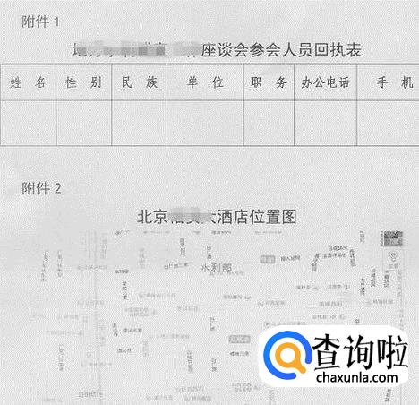 有的会议需要参会人员提交回执,可以在附件中规定回执格式,一般包括与会人员的单位名称、姓名、职务或职称、性别、民族,抵离会议城市的时间、航班、车次,是否需接站及其他要求等。有时为了便于外地人员参会,还要附带报到地点的交通路线、位置示意图等。