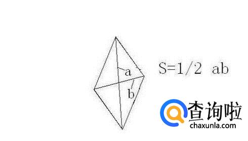 菱形面积=对角线乘积的一半,即 S=(a×b)÷2。